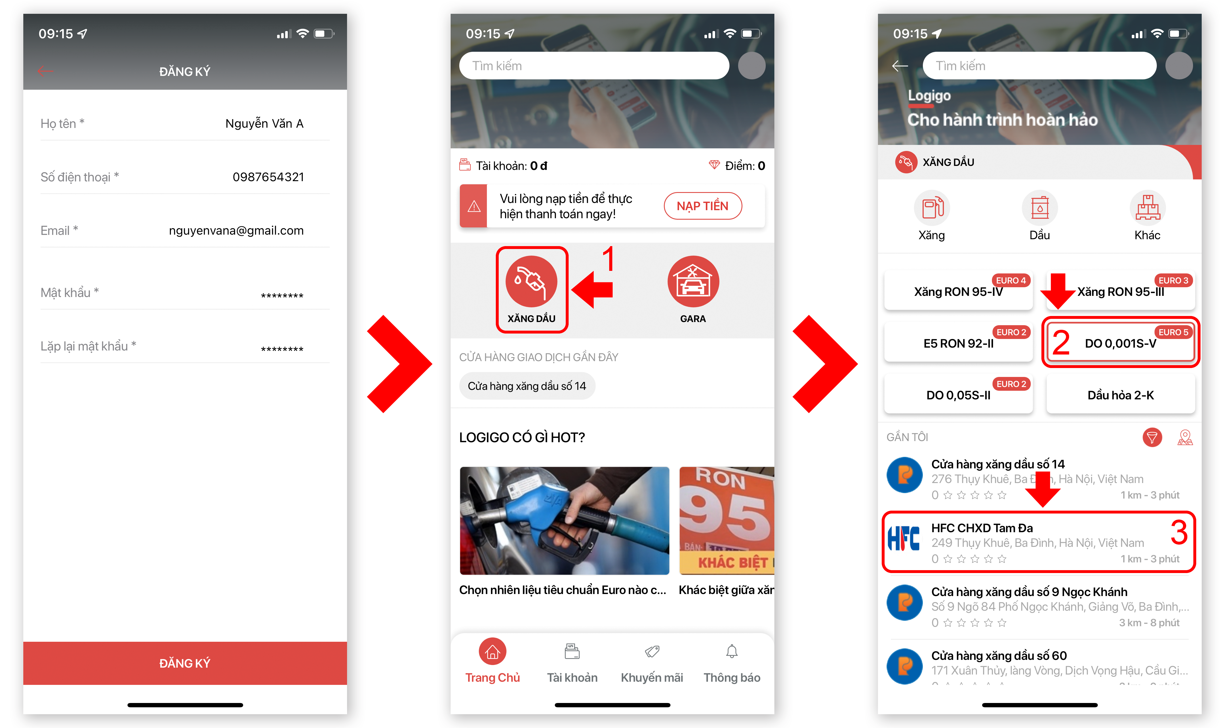 Với Logigo, bạn có thể tìm xăng dầu Euro 5 bất cứ đâu và bất cứ khi nào bạn cần, chỉ với vài thao tác đơn giản, chiếc xe của bạn đã sẵn sàng.